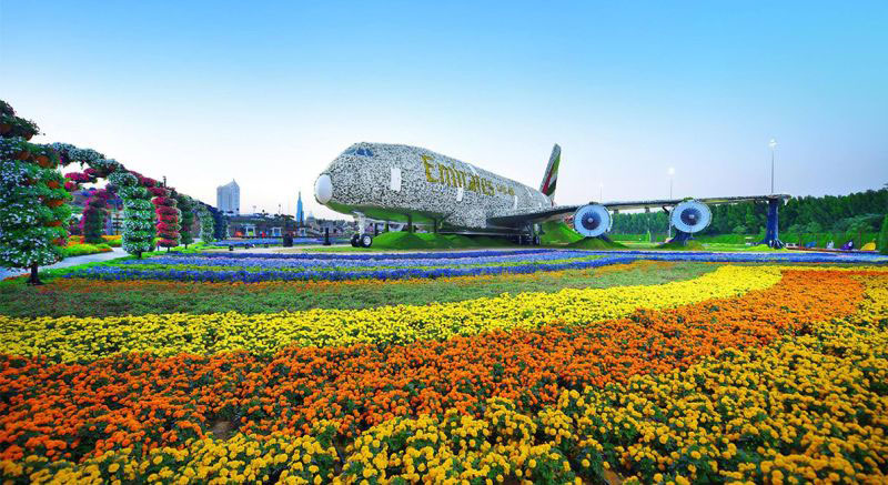 Величезний сад у пустелі вразить Вас дивовижними скульптурами та картинами з 45 мільйонів квітів.